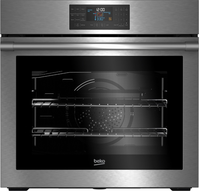 With smart features like easy-read InnovaChef Smart Display, double halogen interior lighting, and 12 cooking functions, this Beko 30” wall oven is every home chef’s dream. Its roomy 5.7 cu. ft. interior is equipped with 2 heavy-duty oven racks, including a telescopic lower rack, for safe and easy handling of your heaviest dishes and cookware. Plus, a low-maintenance enamel interior and programmable self-cleaning make care and cleanup a breeze.