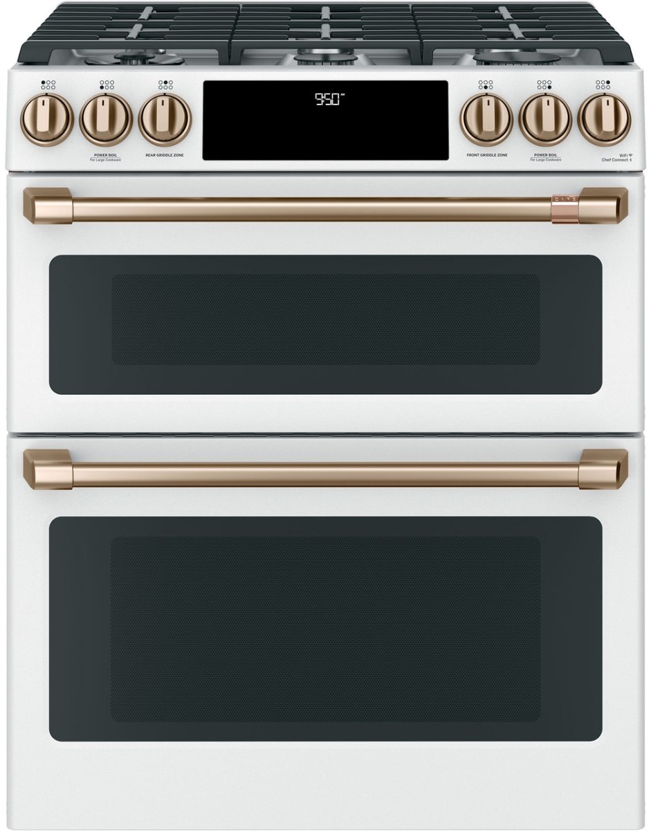 Explore your love of entertaining. This Dual Fuel slide-in range unites the power of a gas cooktop with the precision of an electric oven. The industry’s first edge-to-edge cooktop with six versatile burners also includes an integrated griddle to easily handle large meals and family favorites. And a double oven lets you prepare different foods at different temperatures at the exact same time.Read More