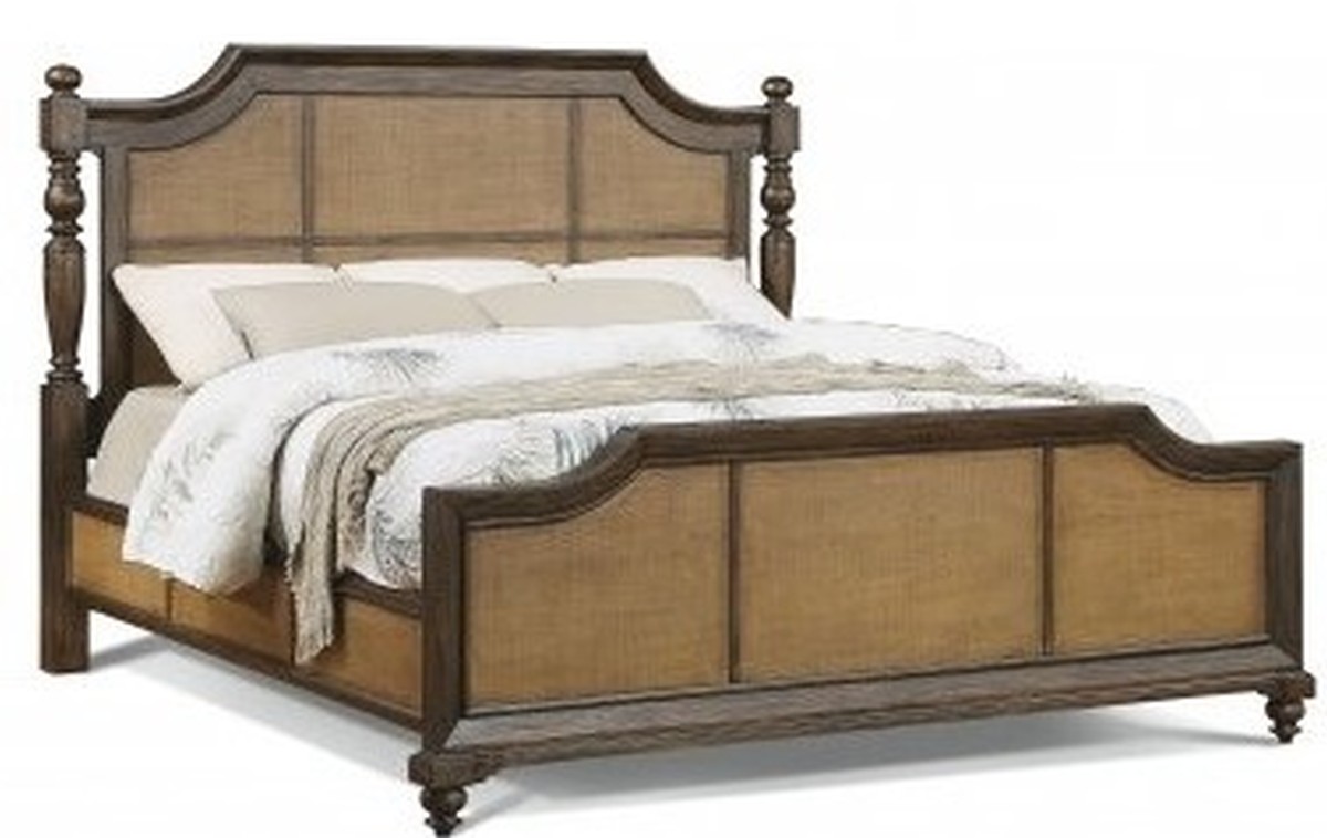 Textured design with a traditional vibe. Wakefield boasts rattan-inspired, wire-brushed distressed finish details and grass cloth accents. This bed is elegantly carved and framed with Chamfered moulding. Its mixed materials complemented with elegant turnings and molding make Wakefield a fresh fashion forward design.Read More