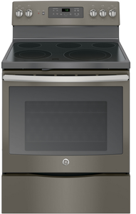 GE® 30" Free Standing Electric Range-Slate with 5.3 cu. ft. total capacity, fast preheat, self clean and halogen oven lightRead More
