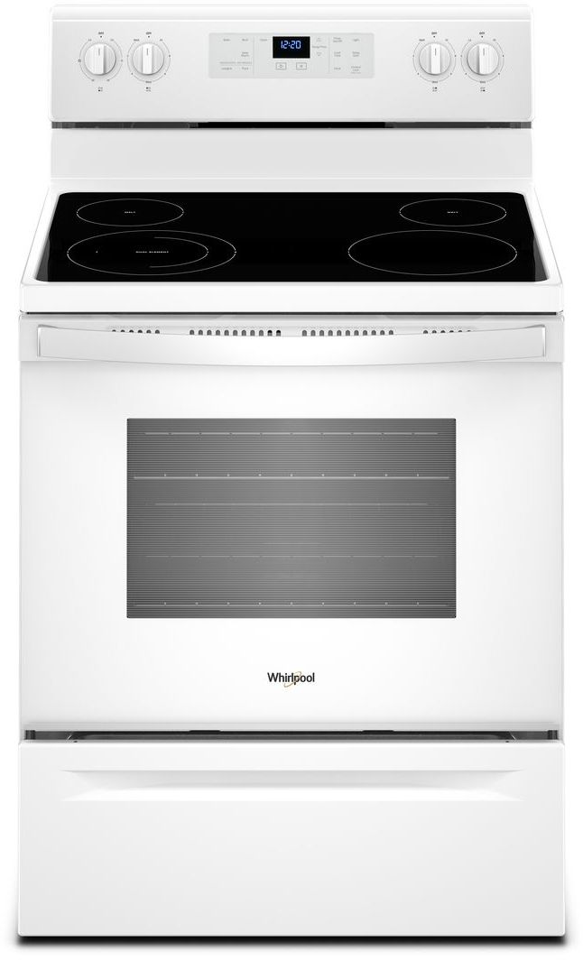 Whirlpool® 29.88" Free Standing Electric Range-White with 5.3 cu. ft. total capacity, adjustable self cleaning and control lock modeRead More