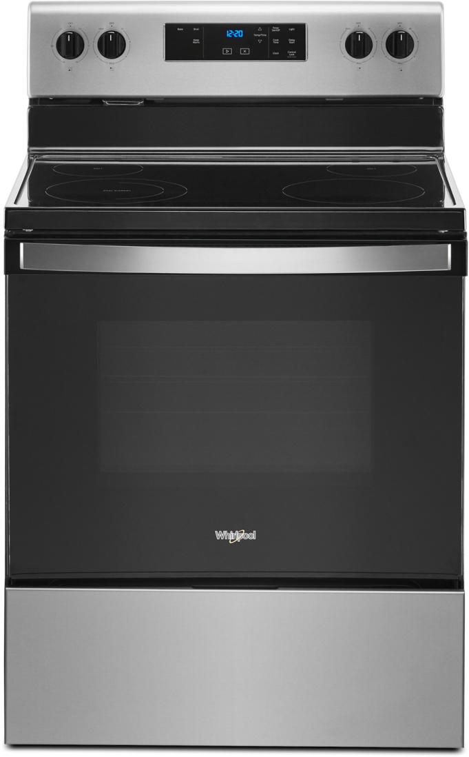 This Whirlpool® electric range with a dual element stove top helps you get dinner to the table, even on a hectic schedule. The Keep Warm setting prevents dinner from getting cold. Closed door broiling helps keep the kitchen comfortable. You can also avoid unintended use with an oven control lock.Read More