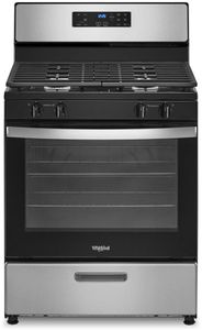 Complete your home kitchen system with the Whirlpool® 5.1 Cu. Ft. Stainless Steel Freestanding Gas Range featuring two SpeedHeat™ burners, Frozen Bake™ technology, and dishwasher-safe cast-iron grates.Read More